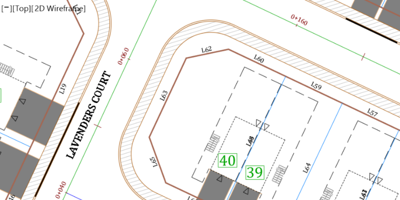 - Use the same previous steps to create an alignment for Lavender Court using the magenta line in the centerline. In the end, you should have an alignment running south to north, with stations showing every 20m or 50ft depending on your practice file units.