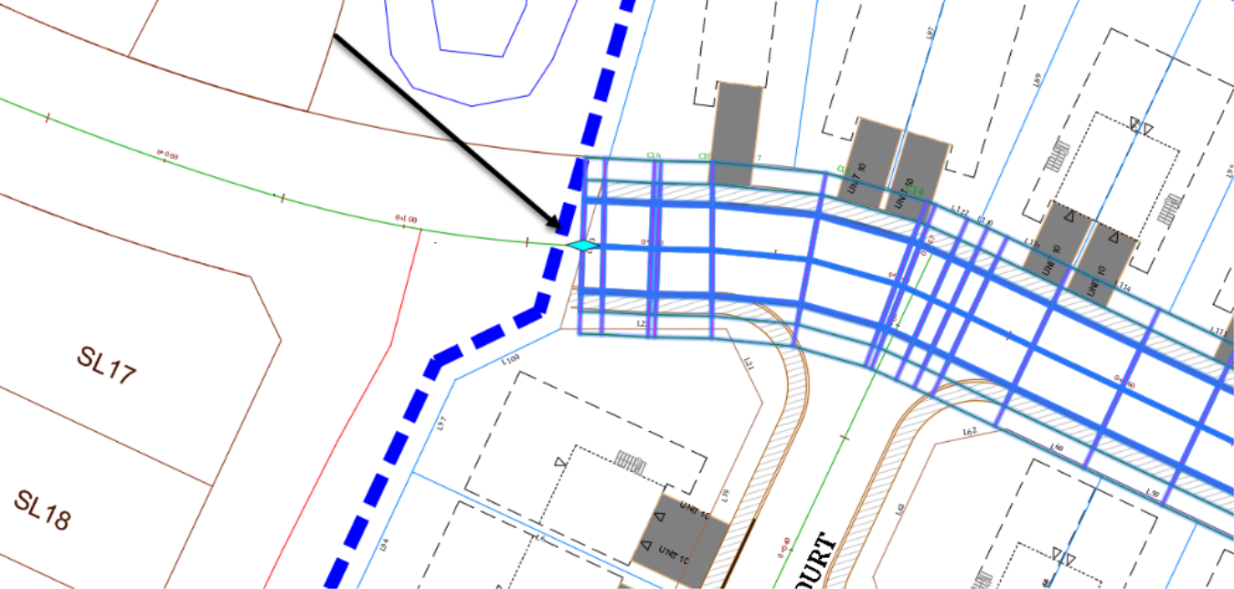 - Finally, repeat the same previous steps and move the east corridor limit to the east site boundary line, just before the roundabout. The corridor is now contained within the site boundaries.