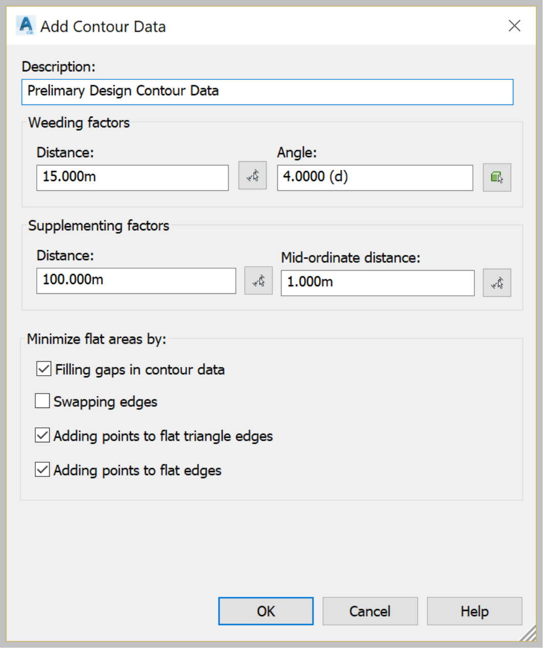 - When we create a surface, it's not always going to be perfect. Maybe we don’t have enough data, or the quality is simply not good enough. Thus, inaccuracies exist. Civil 3D represents these inaccuracies with flat areas. We can fix them by adding more data. For the time being, let's accept the default option in the Minimize Flat Areas By section and click on OK.