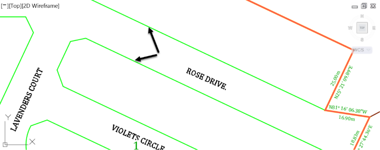 - You will notice that the overall parcel has been created from the boundary polyline. Segment labels have also been added.
