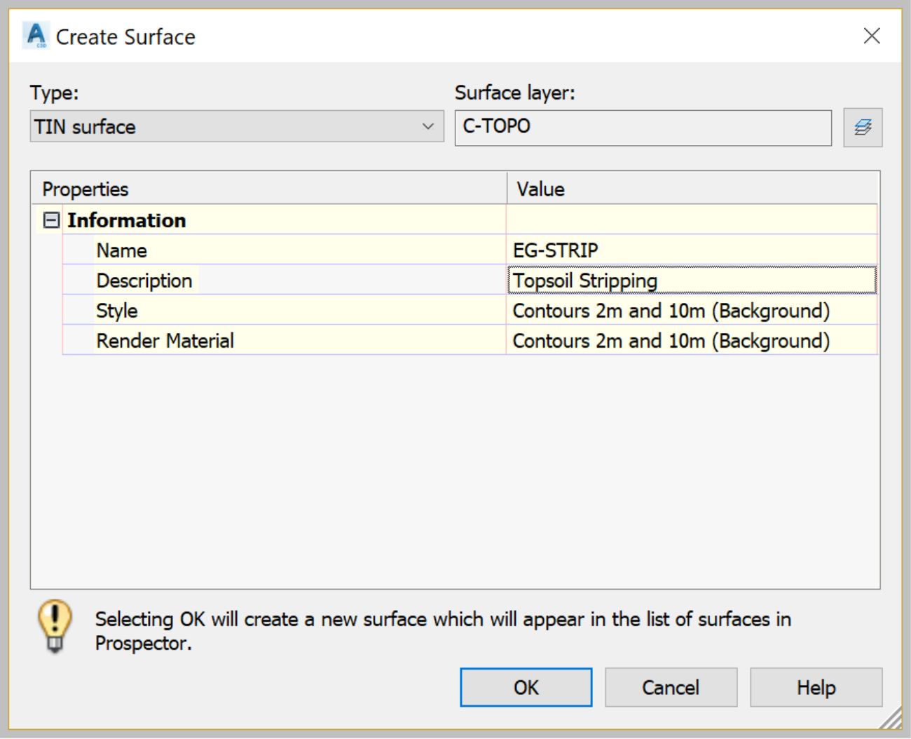 - In the Create Surface window, name the new surface EG-STRIP.