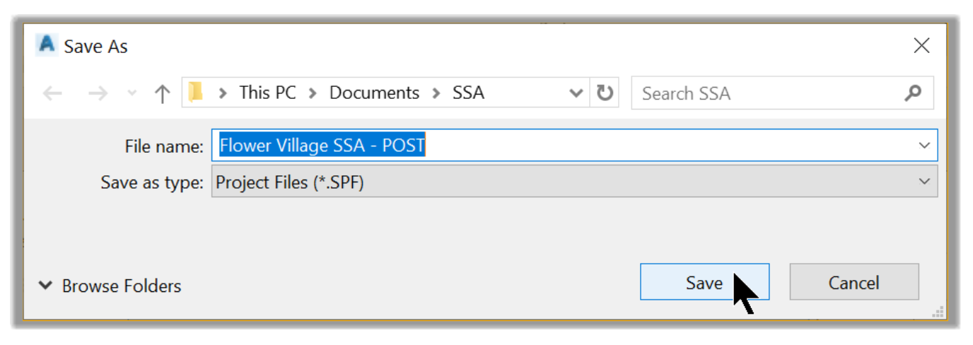 - Then, browse to the practice folder, save the project under the name Flower Village SSA, for example.