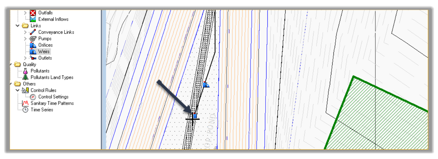 - Then, click on an intermediary point between the pond and the control structure.