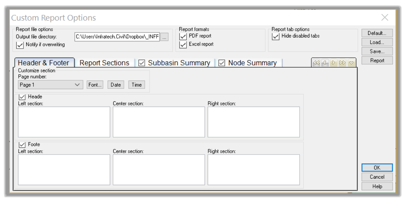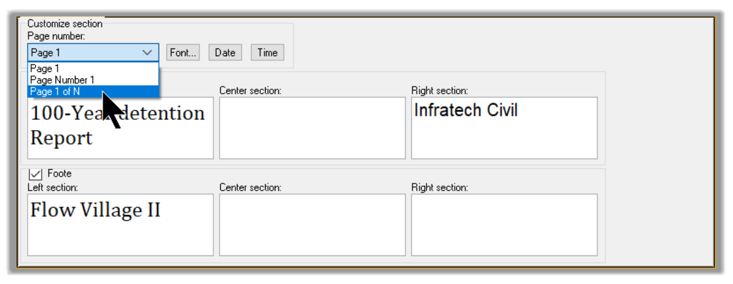 - In the Left Section write the name of the report. In this case, 100-Year detention Report.