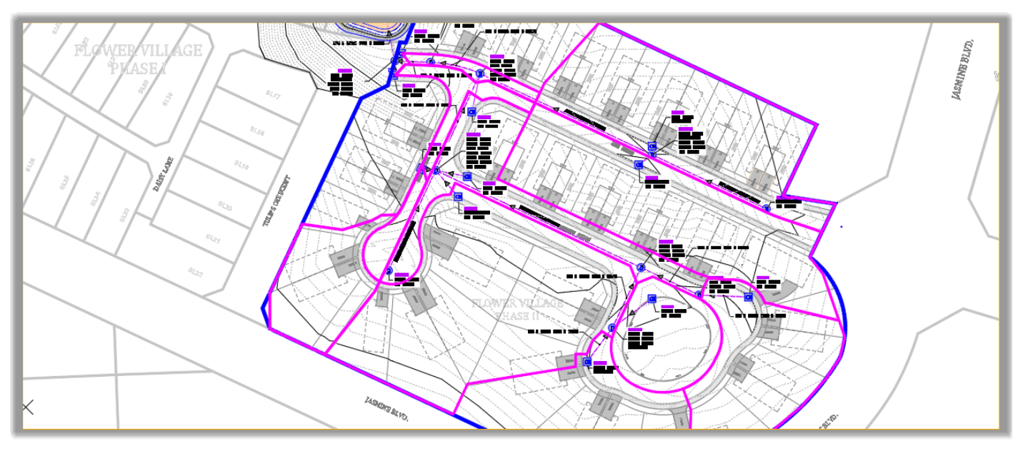 - In this case, we have already created the final catchments and converted them to Parcels. For more details on how to create parcels, you can refer to the following link for the Civil 3D Essentials course. To see the final proposed catchments, turn on the layer.