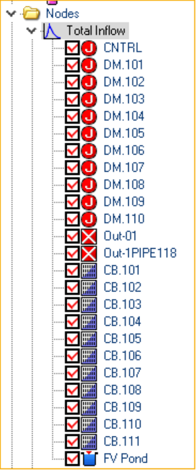 The Node Variables include Exfiltration, flows, Volumes, Water Surface Elevations, etc.
