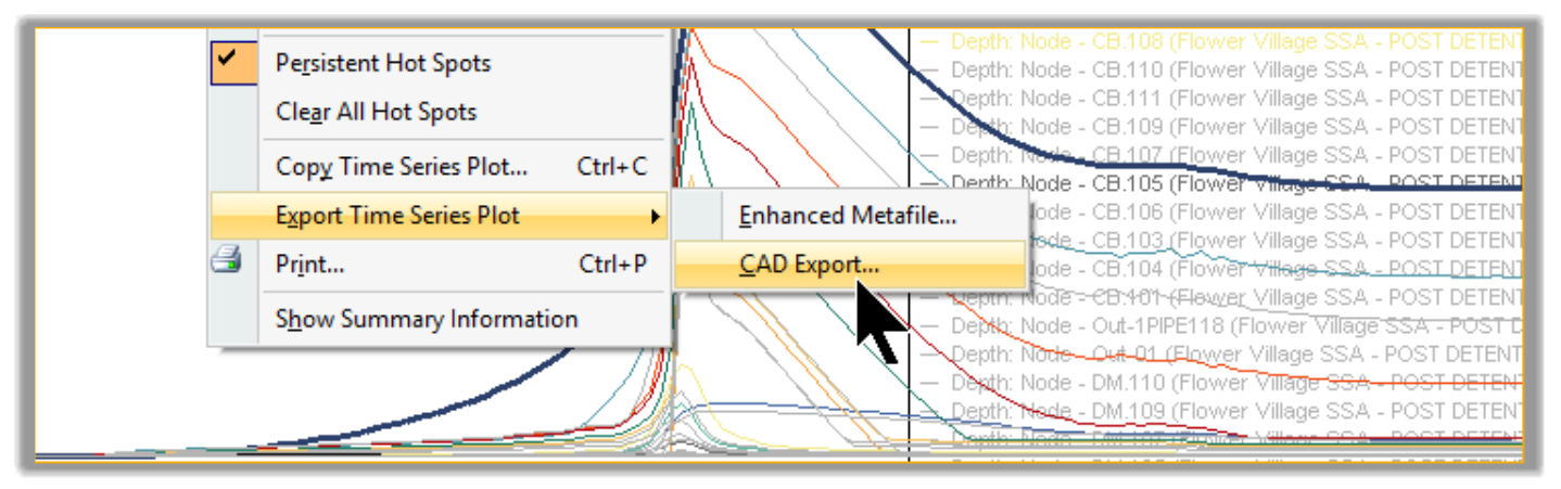 - Similarly, to Profile Plots, we can also export the time series plot to a CAD file or another desired output format. To do that, right-click and choose the desired option.