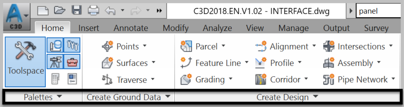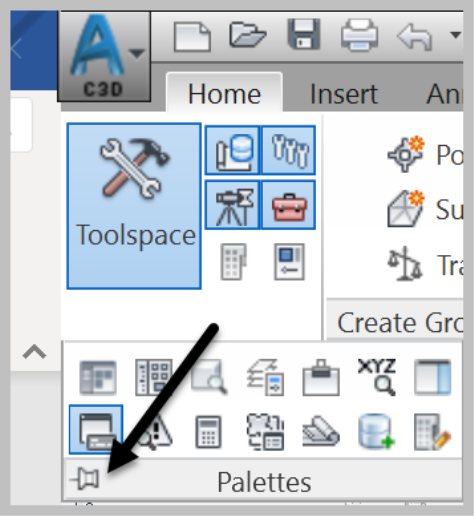 - Palettes, where we canorganize the Civil 3D command palettes.