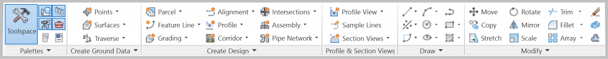 The ribbon is a relatively new feature for long-time Civil 3D users. It’s a rare sight these days, but you can still encounter some users who prefer to use the good old scrolling menu bar.